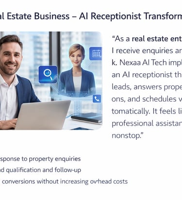 For real estate professionals, the AI Receptionist acts as a lead engagement and qualification assistant, ensuring no opportunity is missed.